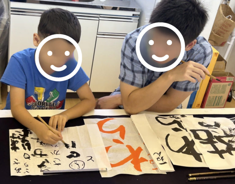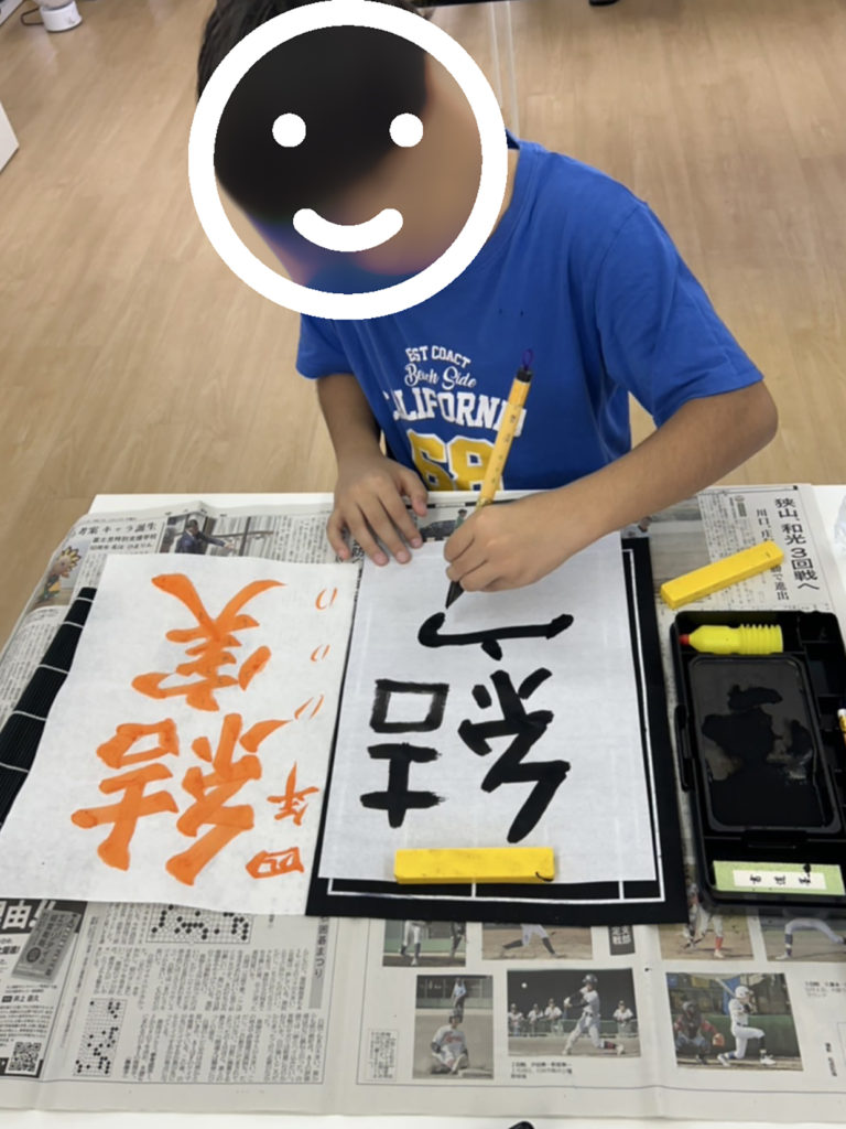 8月9日(土)は、小学生の夏休みの宿題である習字の教室を行いました。当会会員の書道の先生が手本を示し、ボランティアと一緒に楽しく行いました。よほど楽しかったのか、またやりたいとリクエストまでいただきました。
