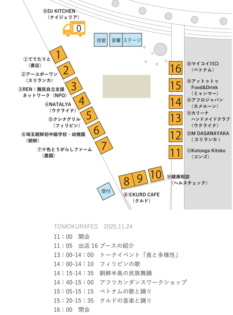 ともくらフェスの会場マップとタイムスケジュールです。
